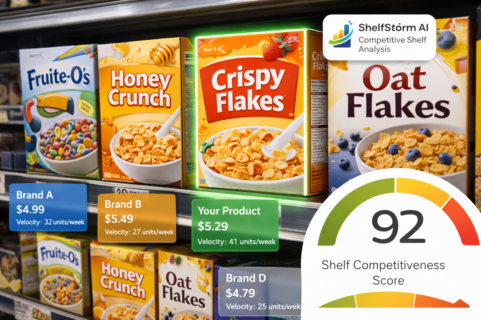 ShelfStorm compares your product against competing items already on shelf to evaluate how it stacks up on price, margin potential, and overall positioning within the category.